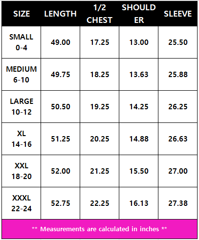 Small- Shoulder to hem 48"