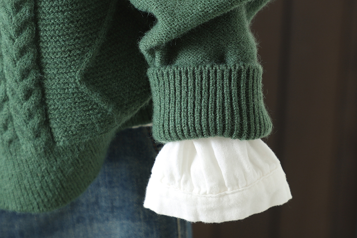 Are you looking for a pop of color in your wardrobe? This grass green turtleneck sweater with long sleeves is like a breath of fresh air on a dreary day. Made from a high quality acrylic/polyester blend, it offers comfort and durability in one.